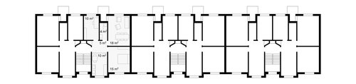 Central Corridor Typology In this scenario, an existing central corridor is extended to run through all flats, serving as a hub to connect and switch individual rooms.